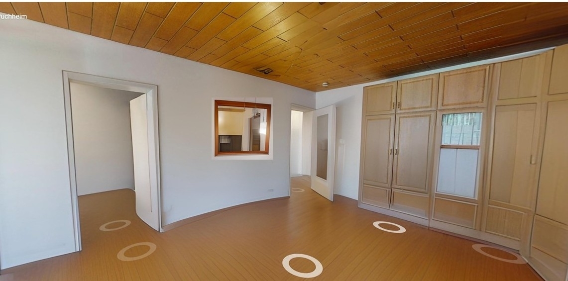 Die Wohnung befindet sich in einem gut gepflegten Zustand und präsentiert sich überwiegend im Stil der 1970er-Jahre. Besonders hervorzuheben sind die mit Holzpanelen verkleideten Decken, die dem Raum einen warmen, zeittypischen Charakter verleihen.Sonstige Angaben: