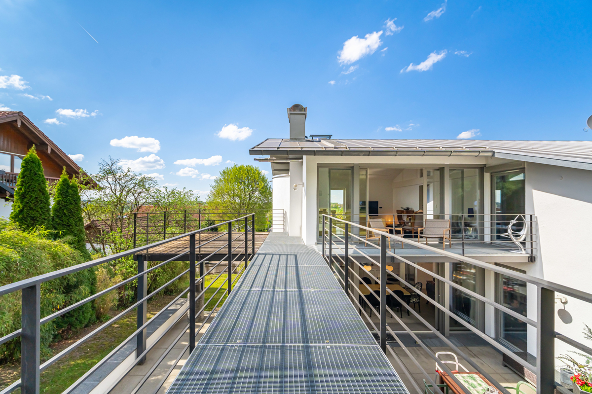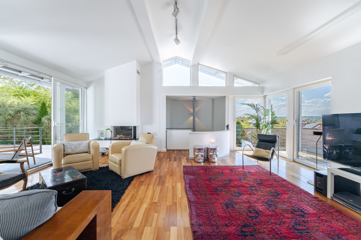 Man ist dazu geneigt, auf Grund seiner großzügigen und zeitlosen Bauweise und der luxuriösen Ausstattung, dieses freistehende Einfamilienhaus als „Villa“ zu bezeichnen. Zugleich versprüht das ruhig gelegene Anwesen ein angenehmes Understatement. Es liegt in einer sehr begehrten Gegend am Ortsrand von Seefeld-Oberalting und bietet einen