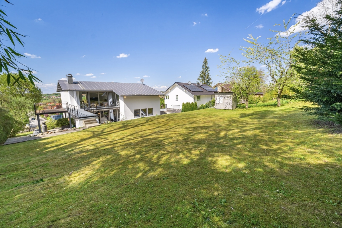 einem 1.155m² großen Grundstück mit leichtem Gefälle errichtet, weshalb sich