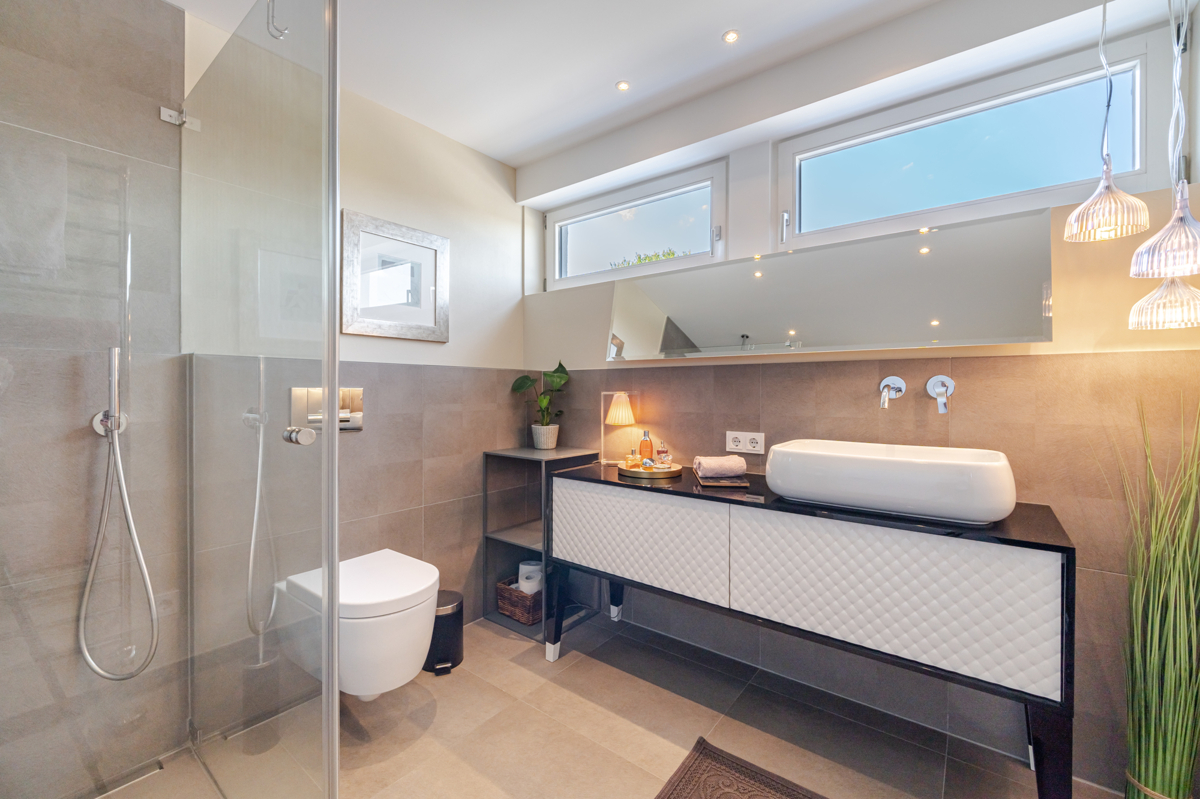 - Zwei Designer Bäder aus dem Hause „MICHEL BÄDER, München“ mit Dusche und WC